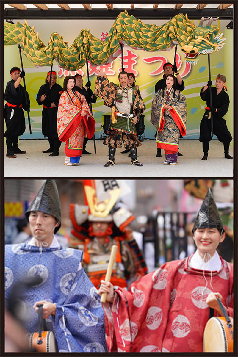 照姫まつりの中心となる三役(照姫、豊島泰経、奥方)、警護武者や舞楽者などの役柄を募集します。